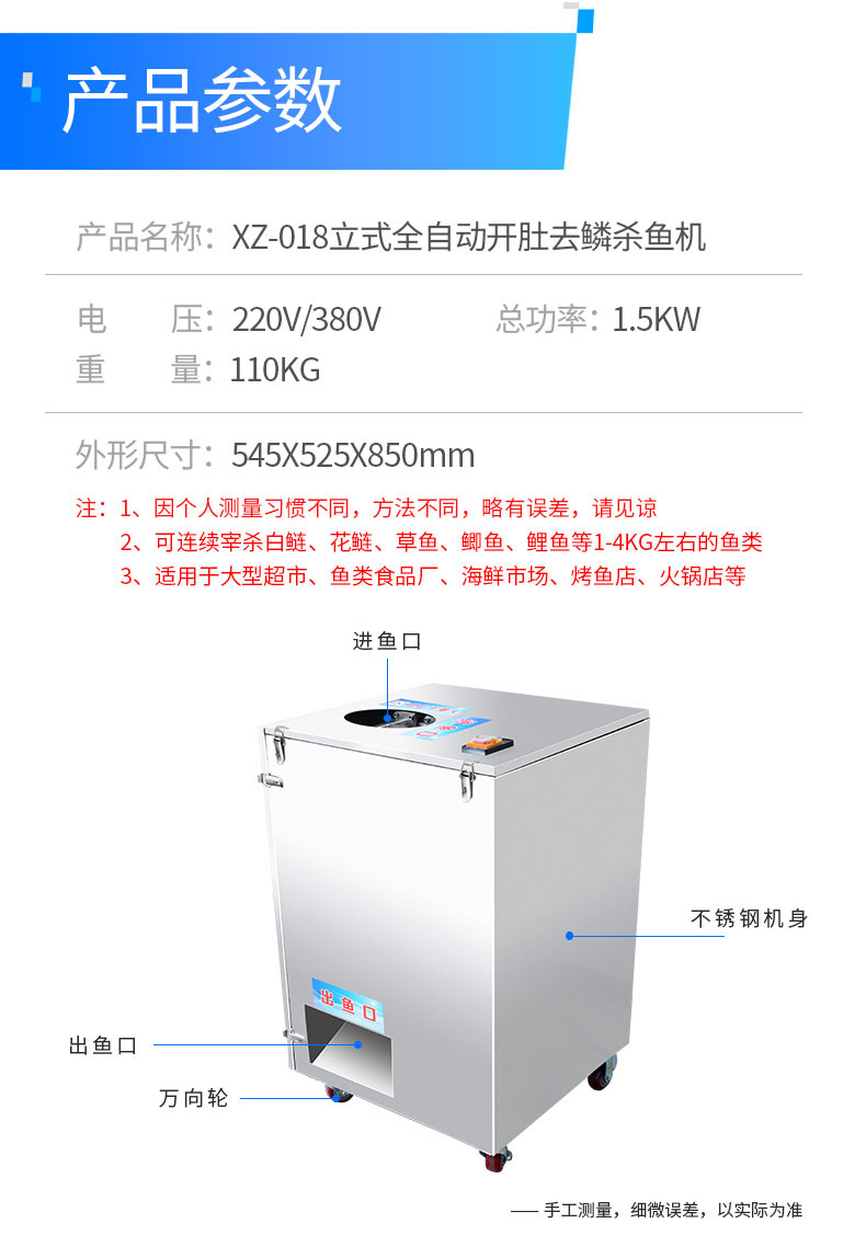 名稱開肚殺魚去鱗機 電源220/380V 功率1.5kw 產(chǎn)量 尺寸545×525×850mm 重量110kg 規(guī)格 其他