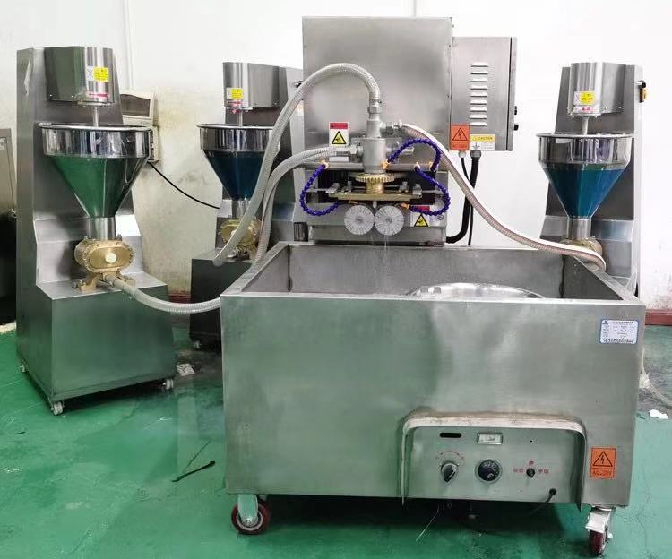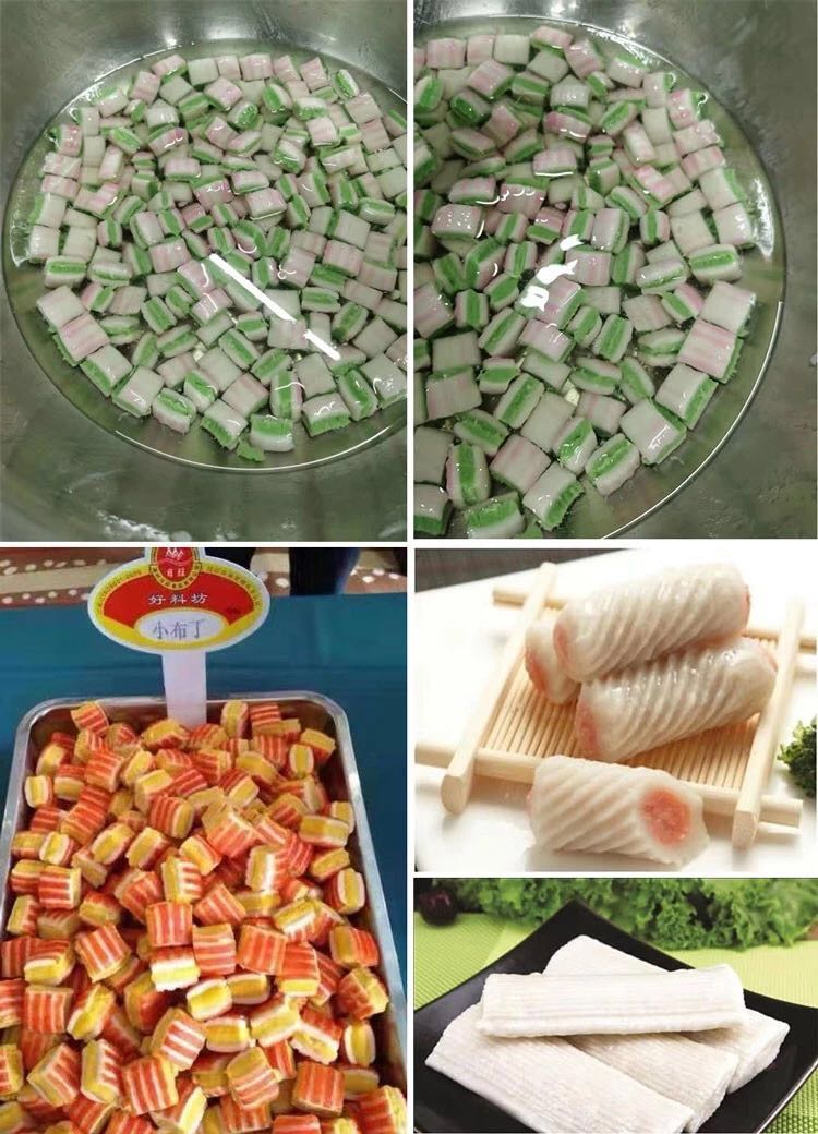 709多功能成型機(jī)新一代的多功能淡水丸機(jī)為魚肉制品成型設(shè)備,配合泵脯(供料機(jī))使用,能生產(chǎn)出單色、包心及多色各種花式的品種,單色配一臺、兩種顏色配兩臺、三色配三臺。該機(jī)采用雙電機(jī)雙變頻設(shè)計(jì),不單只是速度可調(diào),而且產(chǎn)品上的條紋旋度也可調(diào),使得做出的產(chǎn)品更多樣化,操作起來更方便。特別配備滾切刀,能生產(chǎn)出平口和圓口的淡水丸,具有一機(jī)多用的特點(diǎn),可做產(chǎn)品:淡水丸、魚排、小布丁、鱈魚卷、蝦卷、蟹卷、烤魚棒、片片脆、鴛鴦片等火鍋料